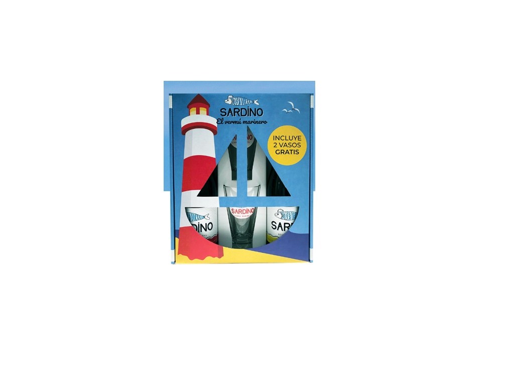 VERMUT ESTUCHE BLANCO + ROJO + 2 VASOS SARDINO